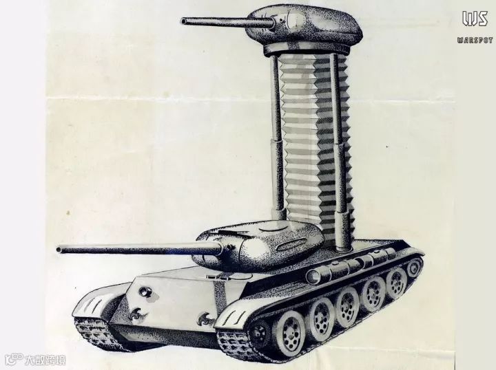 四履带设计方案,为坦克增加两条履带,提高在极端恶劣地形上的通过能力。但是因为这会增重5-6吨,并且底部暴露的链条传动很容易卡入石块泥土导致故障而被否定了。但是四履带的设计并没有从此消失,因为还有我们熟悉的核战坦克279工程。