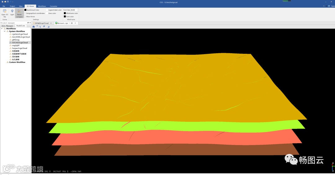 打开cgsdata,新建项目,找到模板工作流GOCAD2cgsCloud,双击打开。