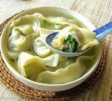 13. 菜肉大馄饨——对上海人来说包馄饨的过程也是重享受。妈妈做的大馄饨可以说是独一无二的美味。皮一定要用鸡蛋皮,具有煮不烂的特点。整只的大虾配上冬笋、荠菜和青菜以一定比例搭配加上上等的猪肉,汤底则选用猪骨熬上3个小时直至骨头酥烂。