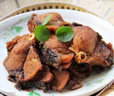 11. 周庄元蹄——此物采用乳猪之腿肘经褪毛、刷油、入味、过油、炖烧而成,肥而不腻,入口齿颊留香,令人回味无穷,至今魂牵梦萦……筷子触皮即破,外肥内瘦,皮脂毫无肥腻之感,入口即化;瘦肉滑而不柴,遇齿则烂;肥瘦同吃,别有滋味,令人顿出此物只有天上有之感。