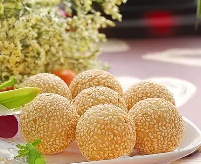 46. 麻球——上海最著名的大众化传统名点。最早始于清代,近100年来,在上海极为盛行。如今用料、制法都有所变化,形状也有大小不同。色泽金黄,皮薄香脆,甜糯适口。