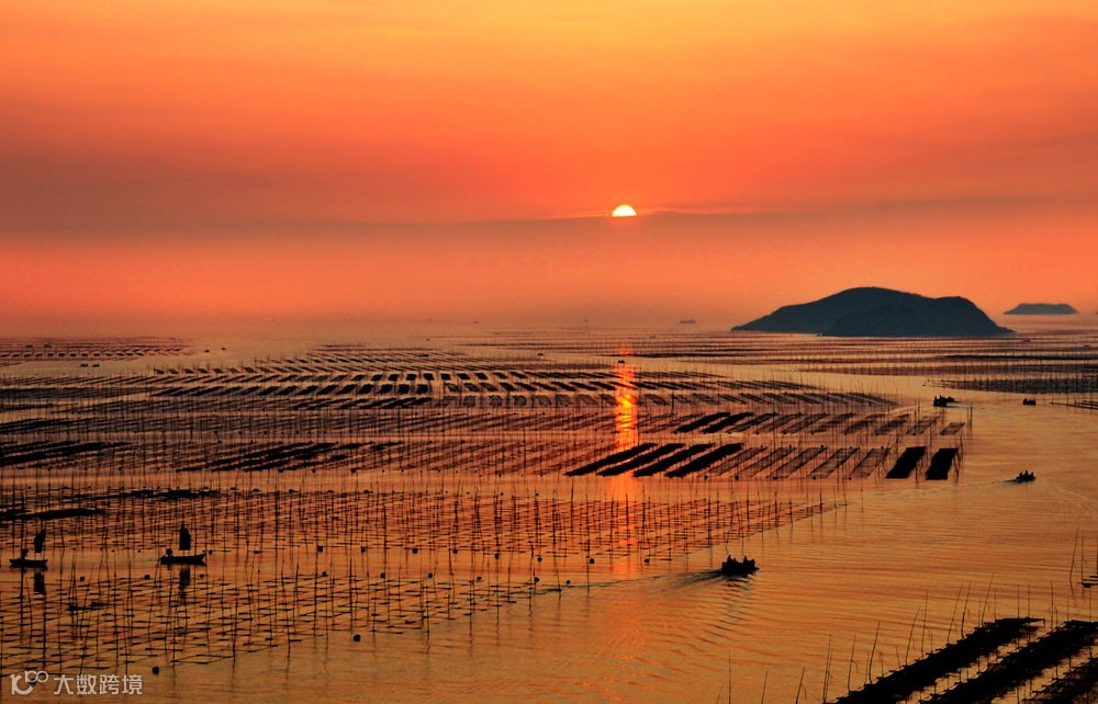 沙塘滩涂日出;围江海带收;馒头山挂蛎晨景、海上渔排。