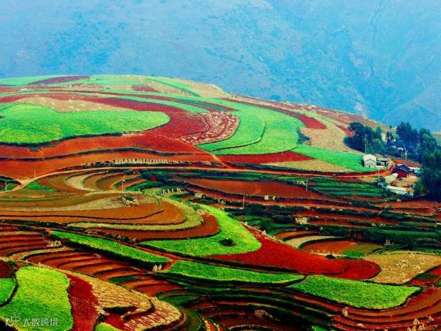 川红土地地处云南乌蒙山区,主要景色在东川区新田乡花石头村。据说比巴西红土地更为壮美。因为这里地处温暖湿润的环境,土壤里的铁质经过氧化慢慢沉积下来,逐渐形成了这种红色。每年5至12月,一部分红土地翻耕待种,另一部分红土地已长满青稞或小麦和其他农作物,远远看去,就像上天涂抹的色块,绚丽斑斓,衬以蓝天、白云,构成了红土地壮观的景色。也正是因此如此,这里成为了摄友们的新宠。