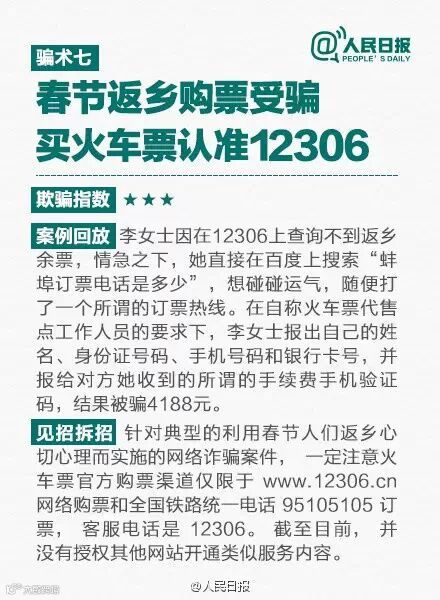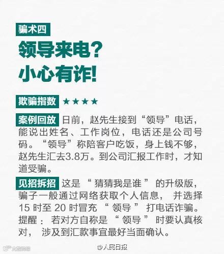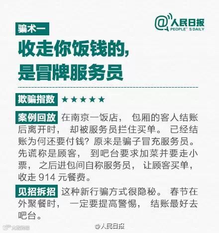春节前是骗子活跃期,手段更是五花八门:冒充饭店服务员收钱、冒充领导诈骗、专挑“手机控”下手的碰瓷党......看图↓↓↓破解9大骗术。守卫钱包,转起!