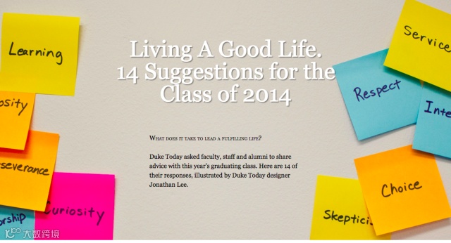 2014年,杜克大学的老师和教工们,给他们2014届的毕业生画了14幅漫画,讲述的他们对新一届毕业生的期许,也正是真正受教育者终其一生应该具备的思维方式。