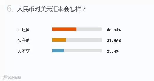 2014年底,人民币汇率经历了一波跌跌涨涨的起伏,于是,人民币未来会贬值还是升值的讨论又再次升温。调查显示,近一半学者认为2015年人民币可能趋向贬值,2014年美国退出QE,加之中国经济增速放缓,应该是学者做出贬值判断的重要依据。而27.66%学者认为将会升值,汇率改革尚未完成,国际化需要驱使人民币升值。只有23.4%的人认为人民币汇率将稳定不变。总体上我们认为2015年人民币双向波动的可能性更大。