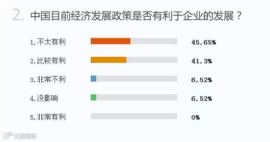 2、 您认为中国目前经济发展政策是否有利于企业的发展?——有人欢喜有人忧 政策影响两极分化