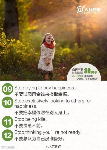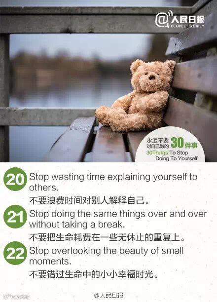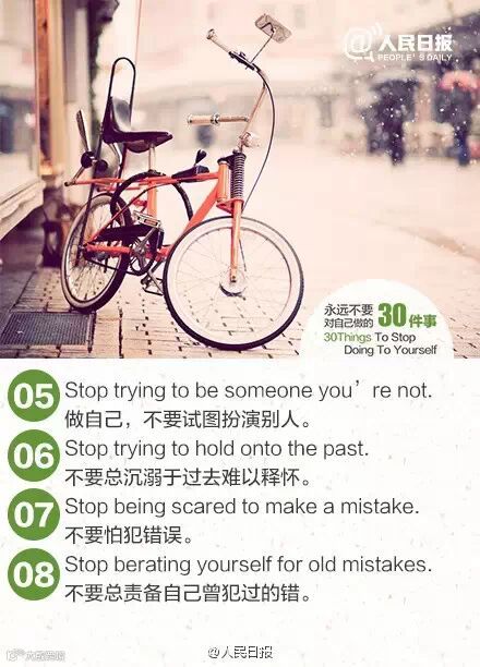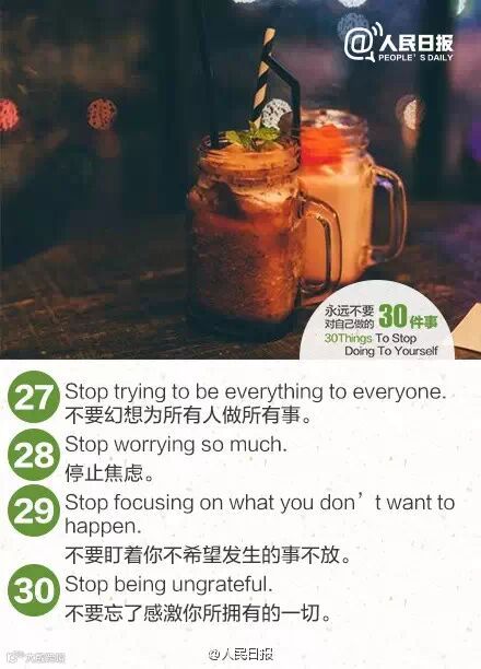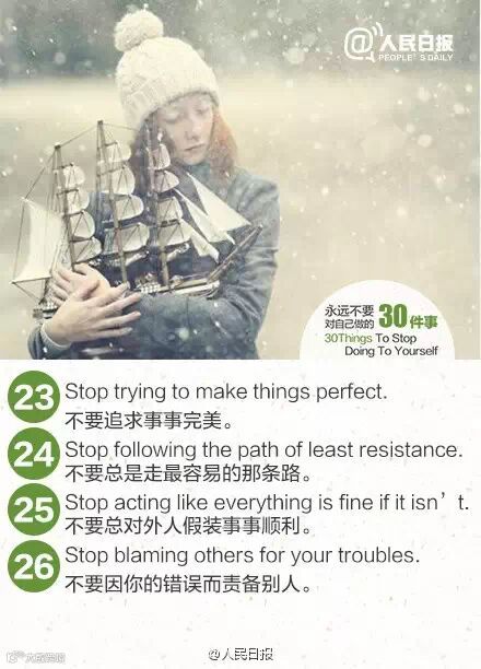 要想得到这个世界上最好的东西,先把最好的你交给这个世界。当你不再追随错误的想法,你才能成全一个更好的自己。永远不要对自己做的30件事,世界,因你的改变而不同!