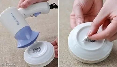 餐具上的不干胶没法揭干净?用吹风机对准标签的位置吹,质量稍好的不干胶条,很容易就撕下来了。如果,表面还沾有粘粘的胶,就用手里撕掉的标签反复粘到胶上,没几次胶就会被标签粘下来了,这个方法比较适合优质的胶,如果是劣质的,效果不理想。