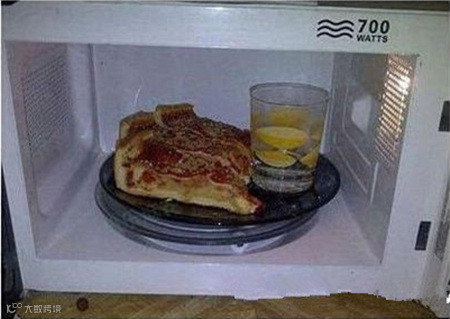隔夜的Pizza直接扔掉?微波炉热Pizza时只需在旁边放一小杯水,口感会比直接热更好。