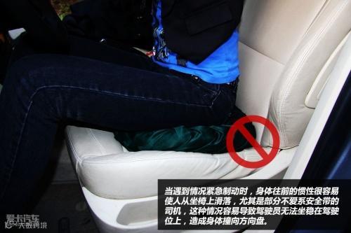 很多女性由于身材娇小,习惯在驾驶席座位上垫一个坐垫。然而因为坐垫是活动的,容易造成驾车者身体不稳,当遇到情况紧急制动时,身体往前的惯性很容易使人从坐椅上滑落,尤其是部分不爱系安全带的司机,这种情况容易导致驾驶员无法坐稳在驾驶位上,造成身体撞向方向盘。
