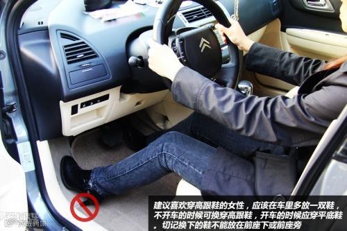 除了坐姿外,有的女司机开车喜欢穿高跟鞋,这样不但影响正常的制动操作,同时非常容易出现鞋跟卡在制动踏板的情况。所以建议喜欢穿高跟鞋的女性,应该在车里多放一双鞋,不开车的时候可换穿高跟鞋,开车的时候应穿平底鞋。切记换下的鞋不能放在前座下或前座旁。