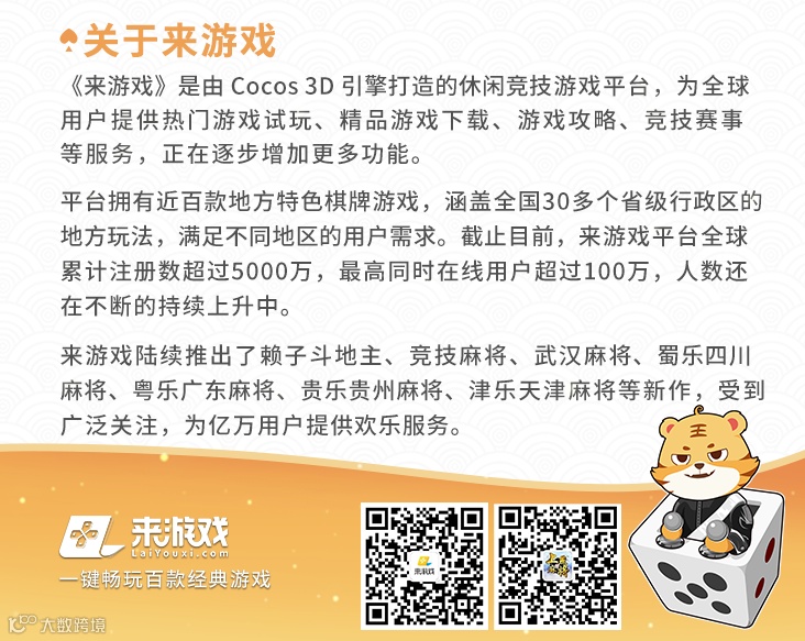 棋牌文化作为中国传统文化的组成部分之一,已成为国民生活中不可或缺的娱乐休闲活动。本平台游戏作为饱受玩家喜爱娱乐项目,倡导绿色发展之路,旨在促进为广大玩家提高技艺,提供一个娱乐竞技平台,培养健康娱乐心态。