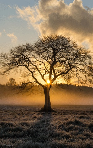 薄雾中的孤树