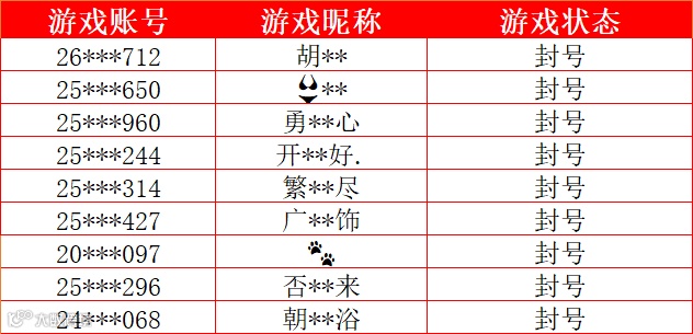 以下是12月部分被封号账号信息