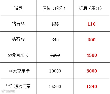 同时参与折扣的奖品还有钻石和京东卡哟: