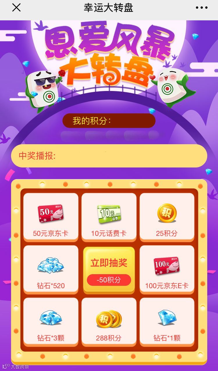 进入公众号-积分商城-点击七夕活动图片,即可进入转盘抽奖页面