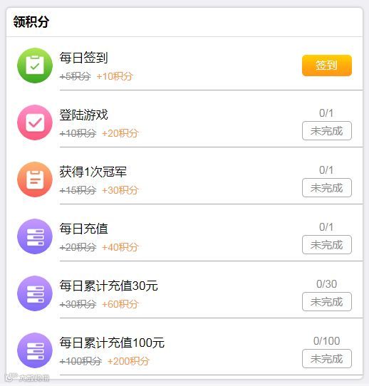 12月24日~12月28日活动期间,在积分中心完成签到、登录游戏、完成游戏组局等任务后,可领取双倍积分!!!