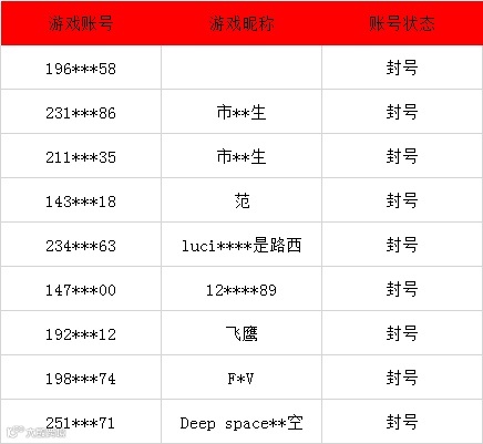 以下是7月部分被封号账号信息