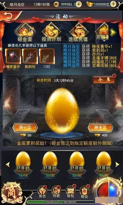 砸金蛋活动中,可获得永久装扮-暗夜奢华和永久橙装武器紫刹剑,砸金蛋是该装扮唯一获取途径。至尊卡在《仙魔神域》种是非常划算的,每日可领取120元宝,金币和经验加成不断,让游戏玩起来更加酷爽。幸运转盘为限时活动,稳赚不赔的元宝投资系统。