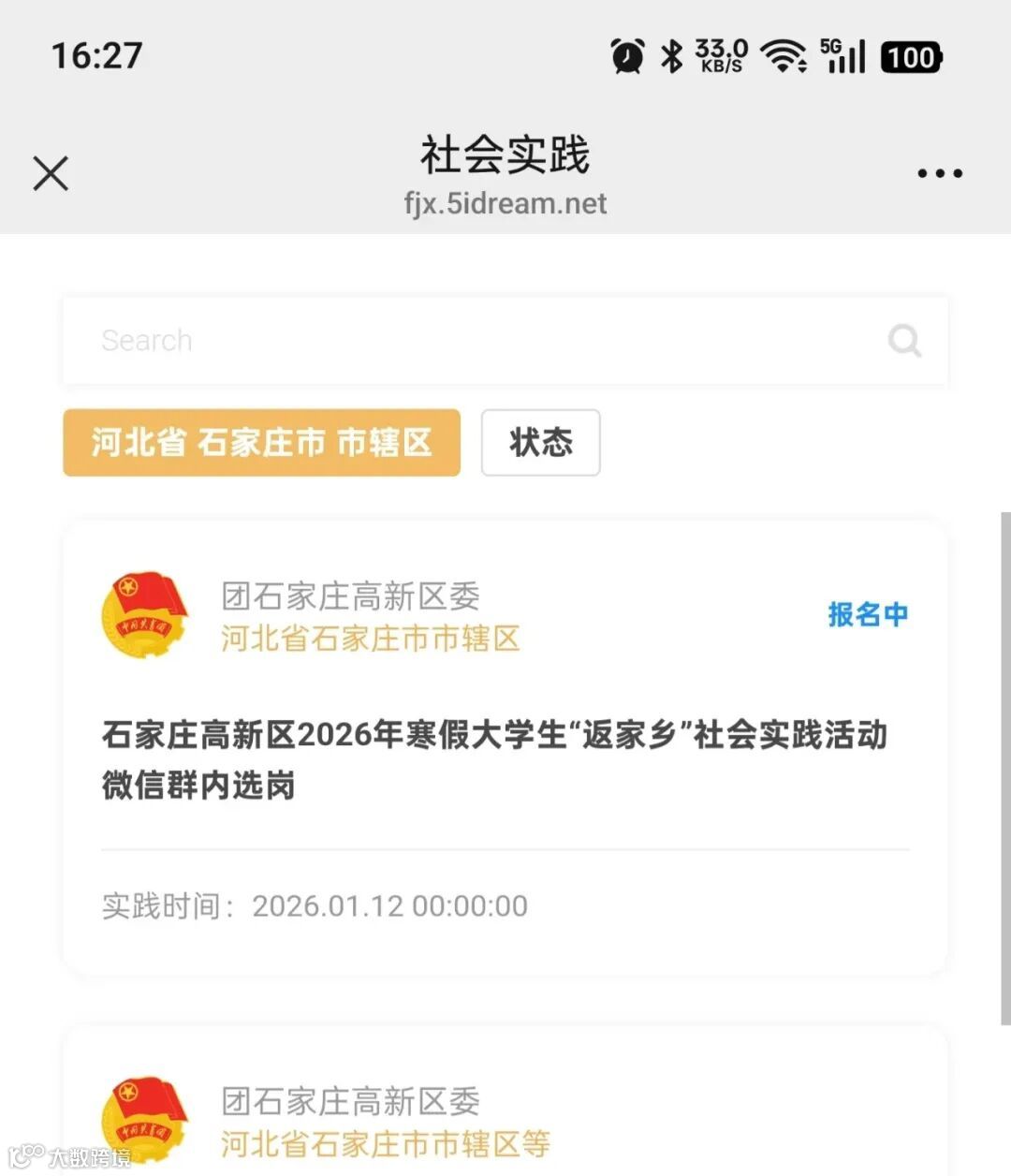 注册完成后,点击选择“返家乡项目”后选择“岗位列表”;点击“区域筛选”,依次选择