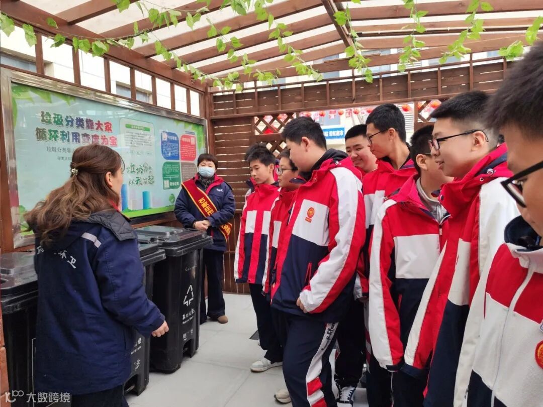 为检验学习效果,在宣传员的带领下,47中学的师生们走进高新区长江街道国宾小区垃圾分类投放驿站,现场学习不同类别垃圾桶的标识规范以及垃圾清运的基本流程,练习了如何准确投放各类生活垃圾。