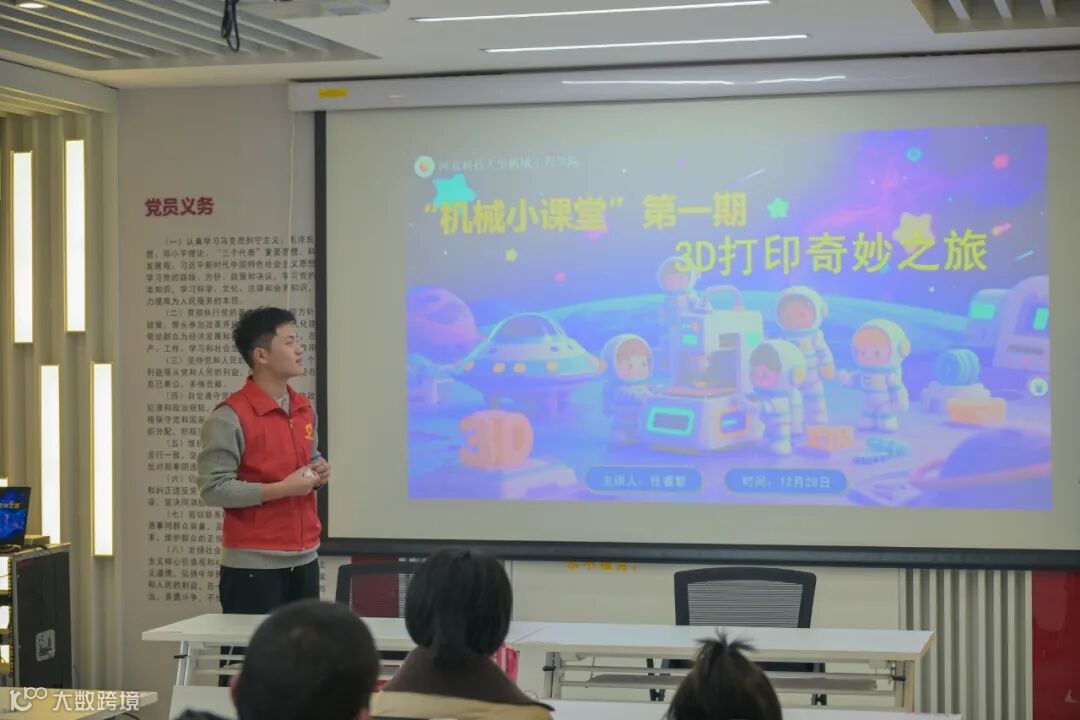 在科普讲堂环节,社区特邀河北科技大学机械工程学院的志愿者,通过动画讲解、实物演示、动手组装、协作创作等丰富形式,将抽象的3D打印知识转化为可触可感的实践体验,让青少年在沉浸式参与中感受科技魅力,着力培养其工程思维与创新意识。