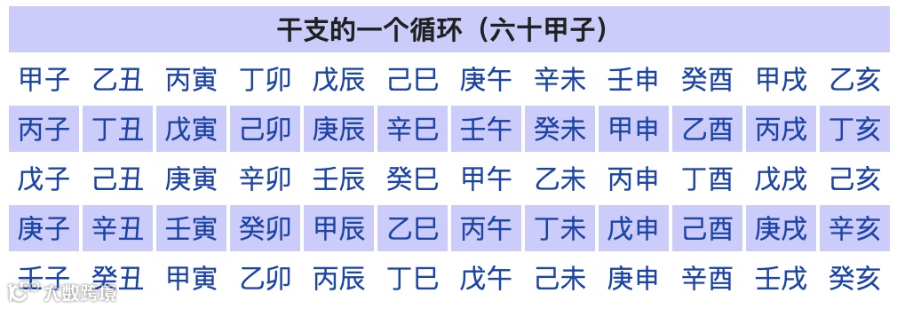 对了,还记得思考题吗?公布答案:B在说谎。虽然天干地支各有10和12个,但因为都是双数,顺序排列循环并不产生全部组合的120组,只有60组,即最小公倍数概念。奇数天干和偶数地支不会相遇,反之亦然,所以不存在丁午年这个年份。