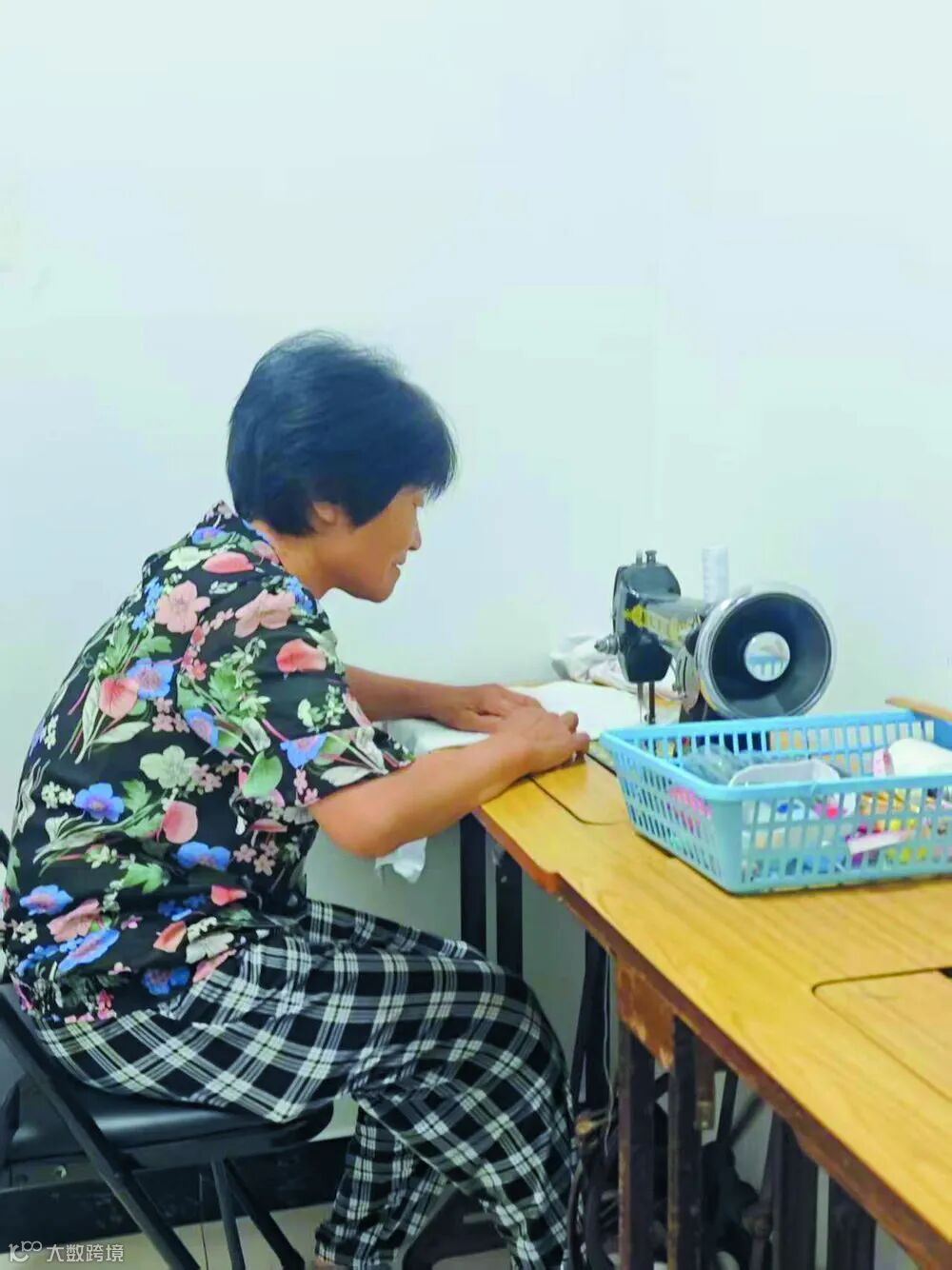居民李素英到同享缝纫室为孙辈做衣服。