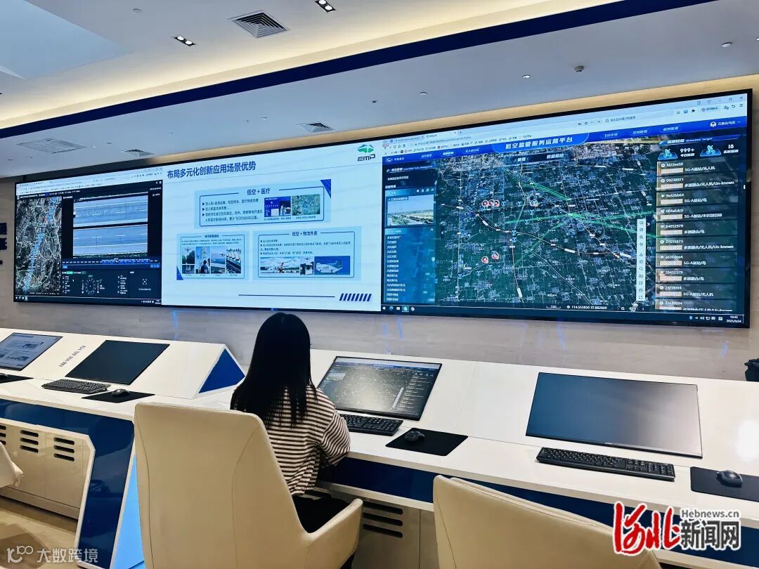 在石家庄栾城区,低空飞行并非“自由翱翔”,而是在一个高度智能化的“大脑”指挥下安全、有序地进行。这个“大脑”就是空中交通指挥大厅。大厅内集成的先进系统,能够实时监控区域内无人机的飞行动态,所有飞行信息一目了然。工作人员可通过运营服务指挥平台,轻松完成航线规划、指挥调度等关键任务。
