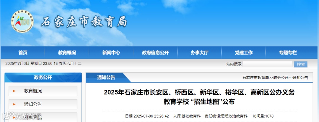 2025年石家庄市长安区、桥西区、新华区、裕华区、高新区根据本行政区域内适龄人口数量和分布状况、学校布局、学校规模、交通状况等因素,划定了公办义务教育学校招生片区范围。现将上述五区“招生地图”公布如下↓↓↓