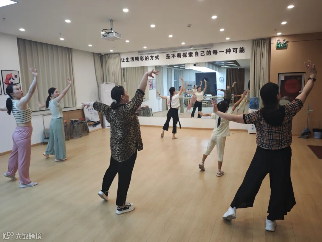 中心舞蹈教室灯火通明,专业舞蹈老师带领居民们舒展身体,从基础手位、脚位学起,学习古典舞的舞姿,衣袂翻飞间尽显古典舞的柔美与灵动。训练厅内,水袖划出时空弧线,足尖点染盛世气象,引得窗外散步居民纷纷驻足观看。课堂上,学员们认真模仿老师的每一个动作,虽然略显生疏,但个个精神饱满,热情高涨,学员们在练习中逐渐放松,笑声与鼓励声此起彼伏。