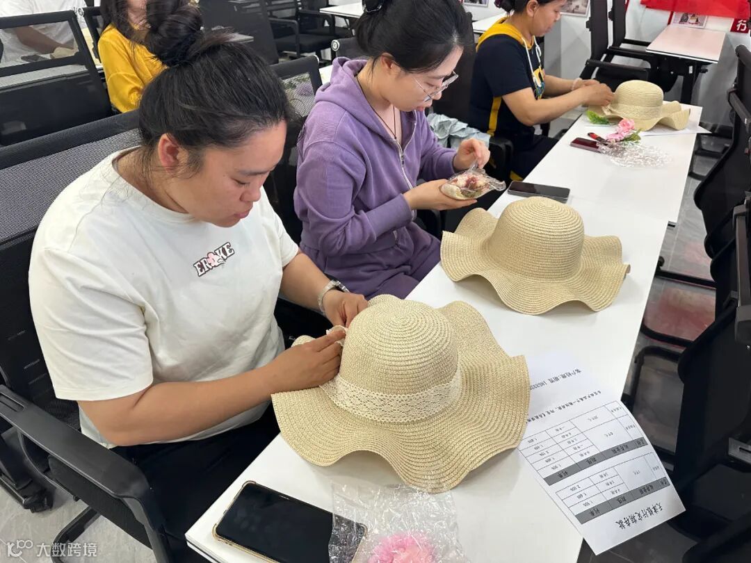 “大家可以把喜欢的花材错落摆放,用热熔胶固定,再搭配小饰品,让草帽更有个性。” 老师一边操作一边耐心指导。
