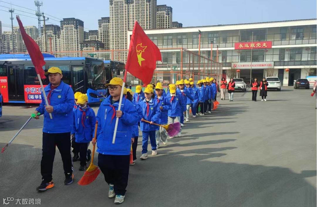 活动最后,北乐乡社区工作人员和南乐乡小学学生们一齐带着清扫