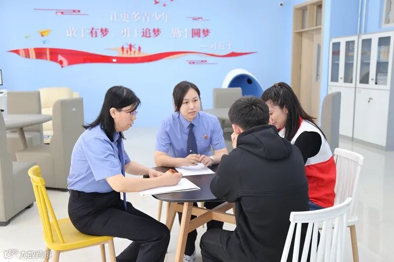 区检察院、团区委、区妇联、向阳社工等相关工作人员参观观护基地,现场体验沙盘、音乐放松系统等设备。社会观护专员对首批涉案罪错未成年人进行了专业观护帮教,通过法治宣讲、沙盘模拟、心理疏导、亲情感化等方式进行个性化观护,帮助其顺利回归正常生活。