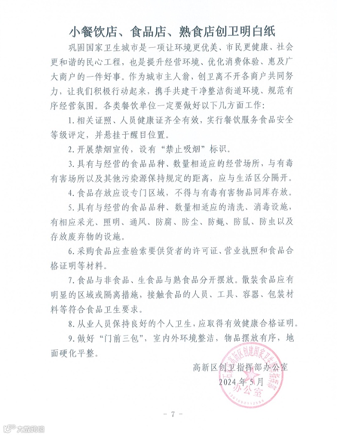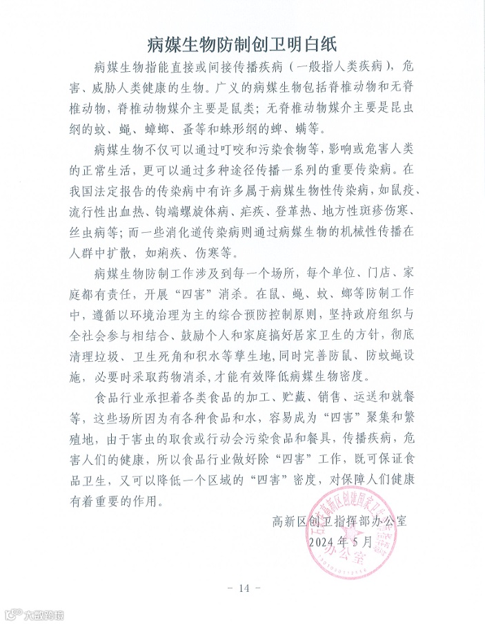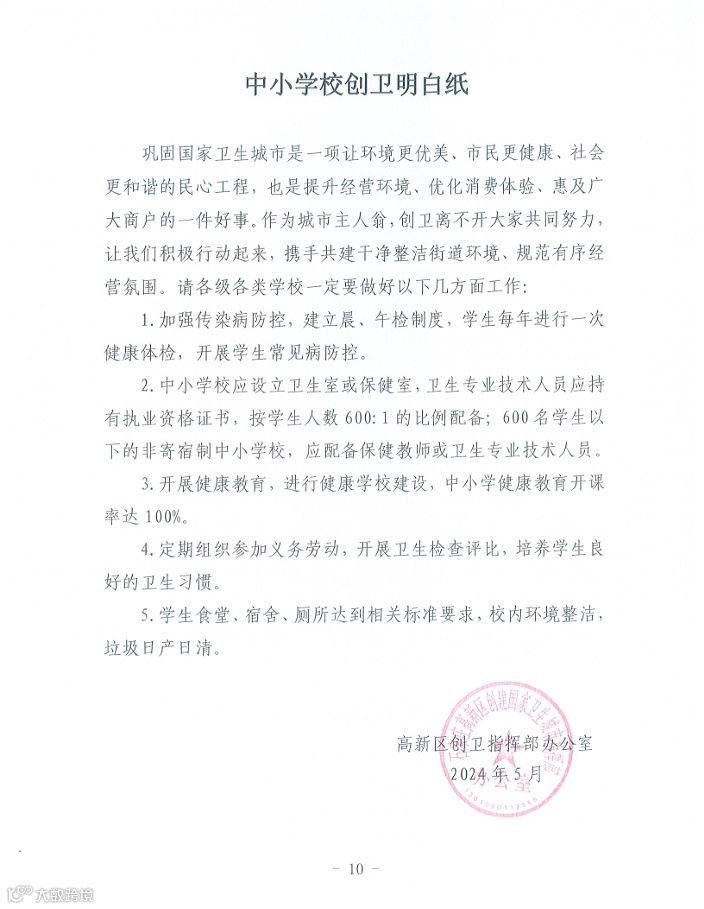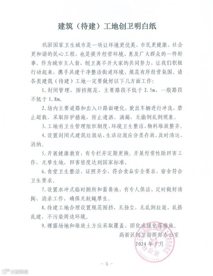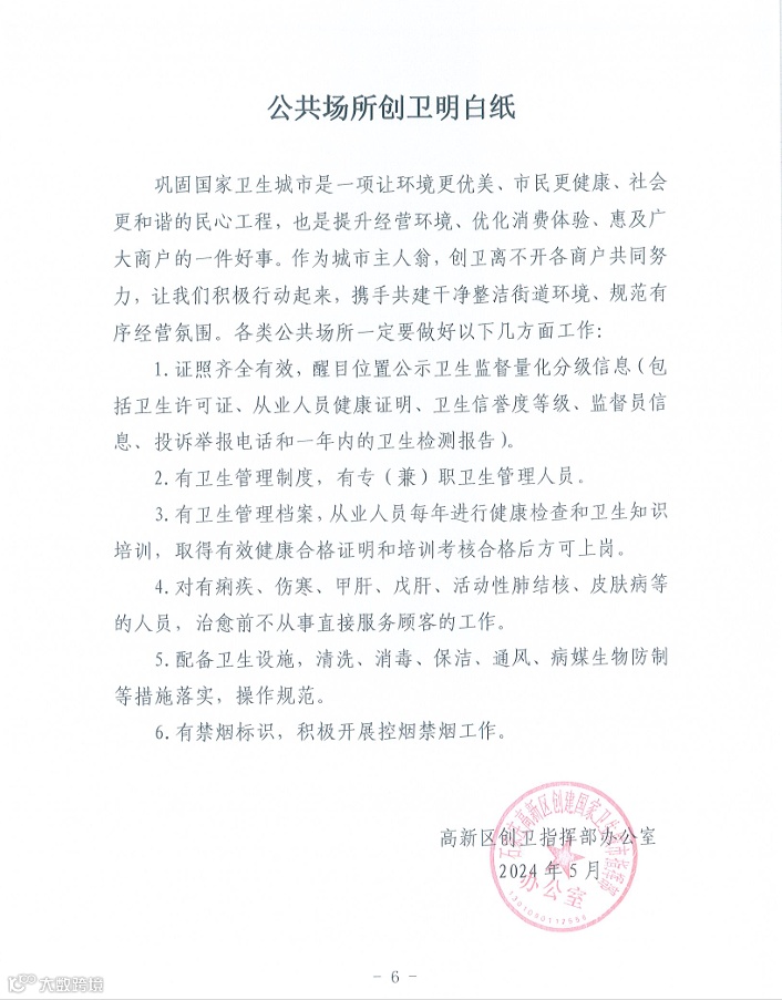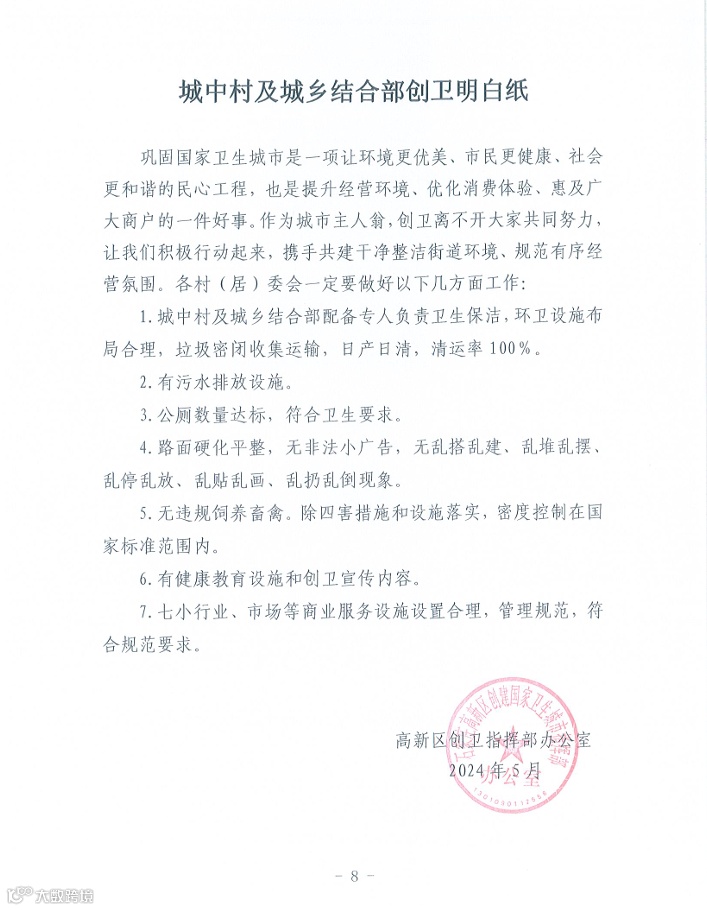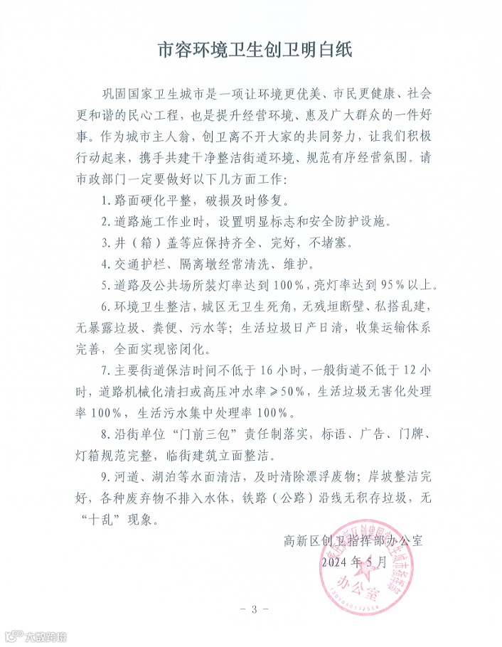 导读:高新区巩固国家卫生城市创卫工作明白纸