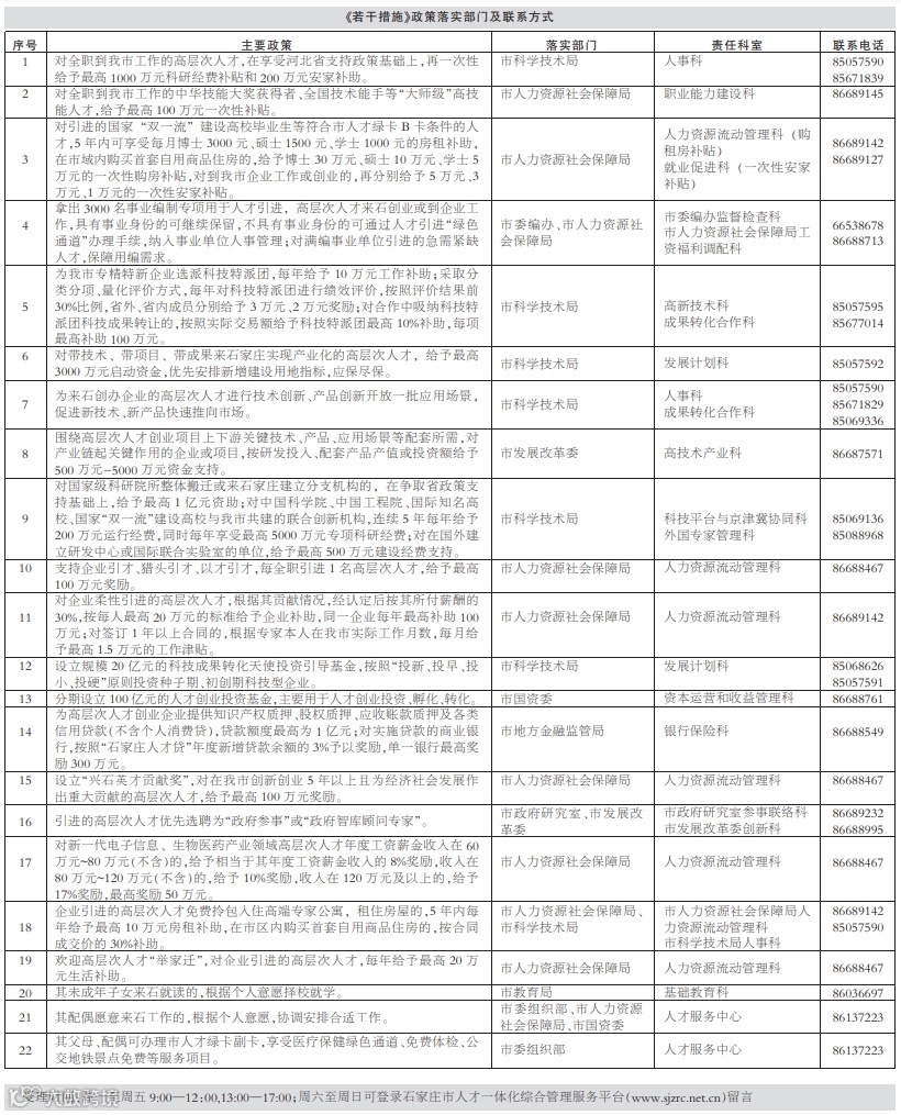 导读:《关于深入实施新时代人才强市战略的若干措施(试行)》政策落实部门及联系方式