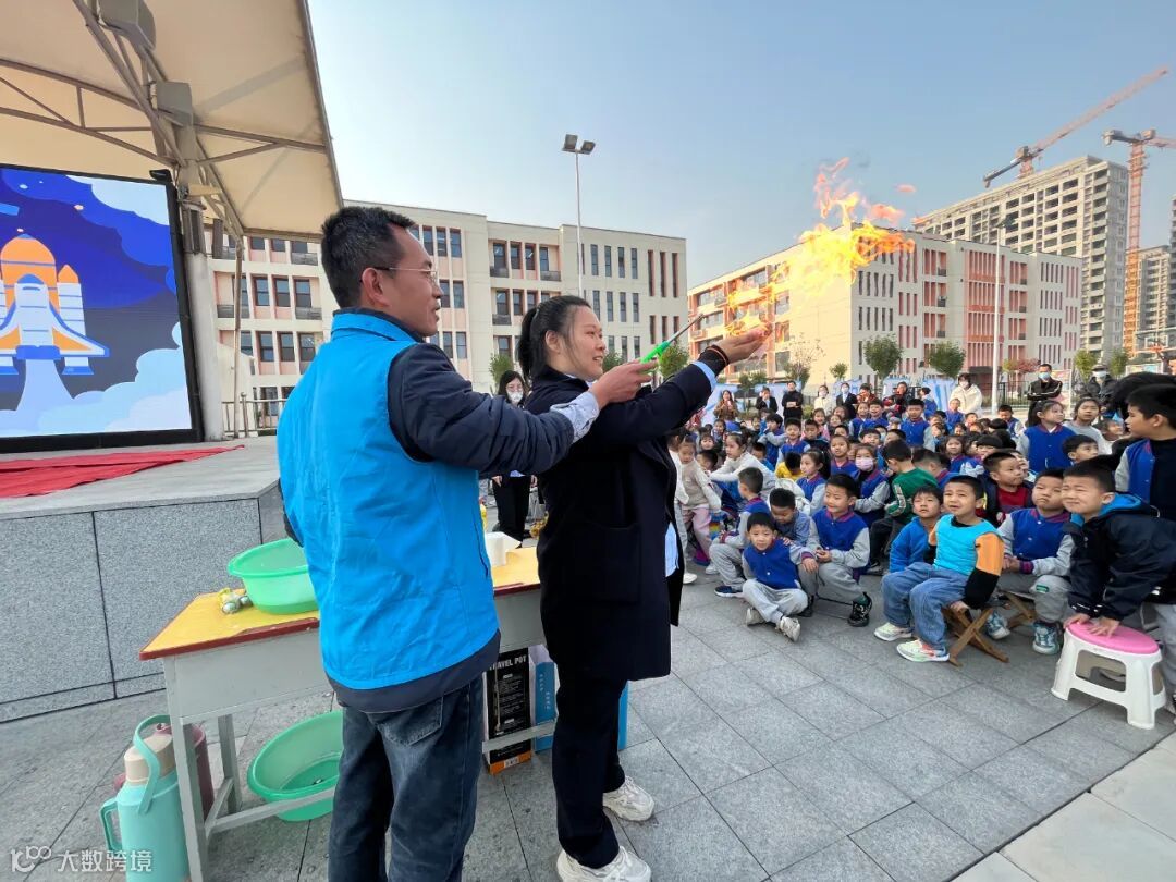 本次活动在一曲激昂高亢、充满力量的架子鼓表演中拉开帷幕。在创意展演环节,一年级同学们发挥创造力,将废弃纸箱、卡片塑料袋等“变废为宝”,进行了创意时装秀。石家庄市科技创新教育学会张博超团队带来的“空气大炮”“火焰掌”“筋斗云”“泡泡秀”等科学实验,让同学们在互动中学习到了不一样的科学知识。在航天科普模型展示环节,同学们依次观看了由石家庄亚光速航空航天馆带来的玉兔月球车、嫦娥二号卫星、舱内外航天服等航天模型,并通过现场科技展牌了解了我国北斗卫星导航系统和中国天眼等科技成果。