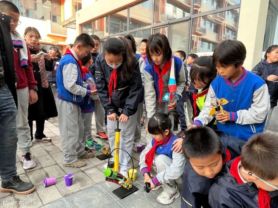 学校科学社团展示了学生们动手制作的飞机模型以及在科学主题下创作的奇思妙想科幻画,还安排了纸飞机、水火箭、编程等科学竞赛展示。活动最后,同学们将自制的彩色纸杯粘到“承天工 趣开物”大字展板上,让校园内学科学、爱科学的氛围更加浓厚。