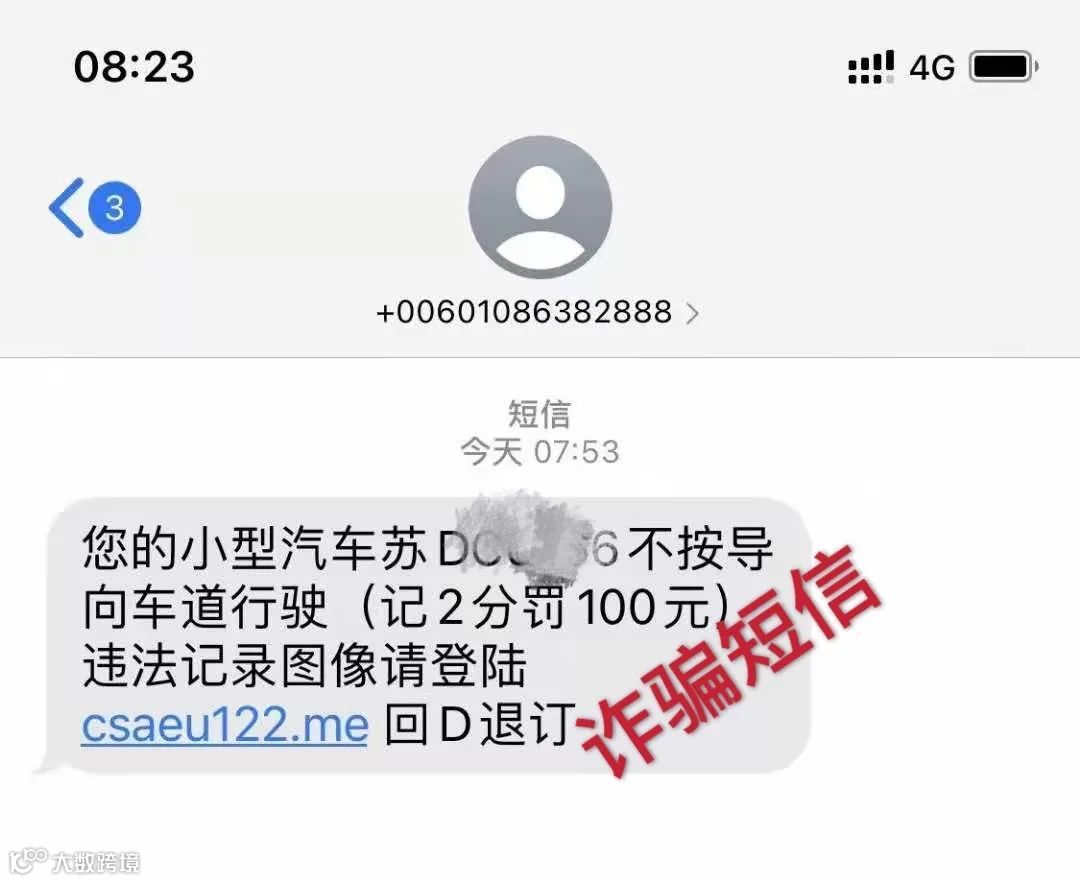 不法分子通过不正当的手段获取到受害者及车辆信息,然后通过改号软件给车主发送“违章”的诈骗短信,并在短信中附上虚假网站的网址链接。