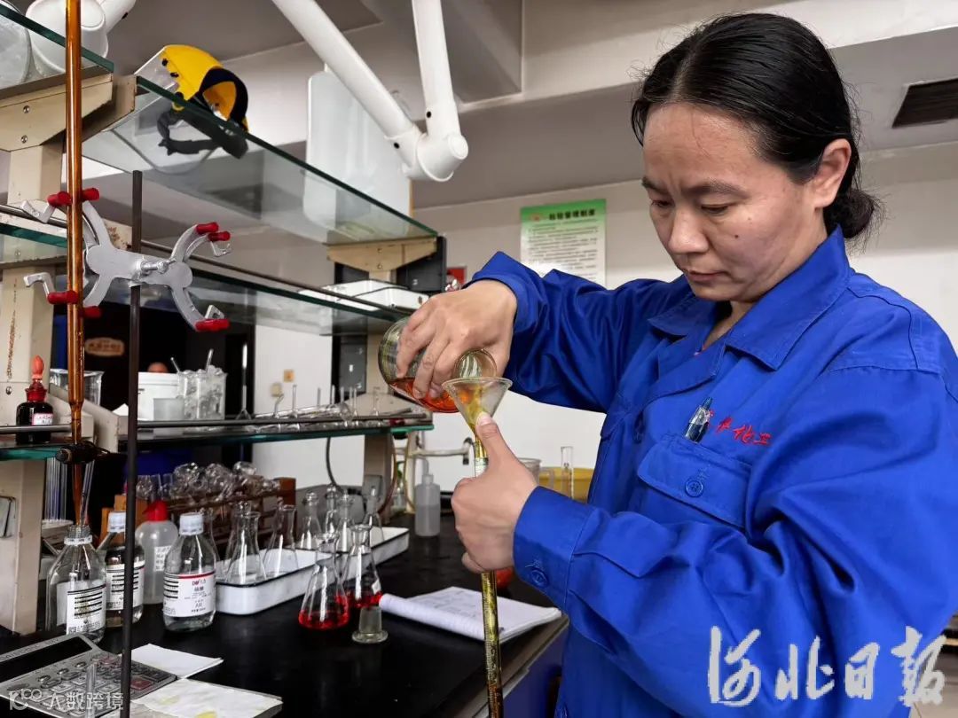 4月25日,石家庄东华金龙化工有限公司检验室,工人正对产品进行检验。河北日报记者 白云 摄