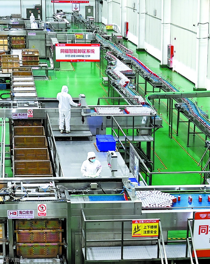 位于石家庄市栾城区的同福大健康食品城中央厨房内,机器高速运转,满足订单生产需求。