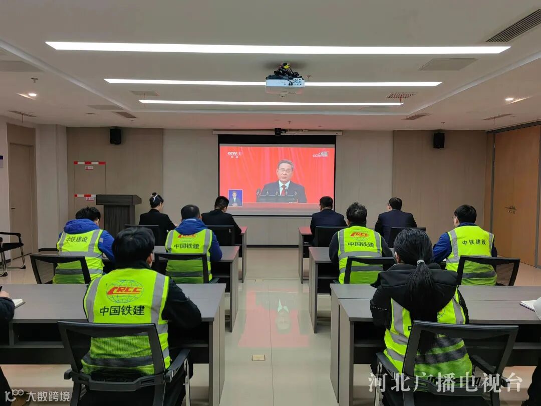 中铁建设集团雄安发展公司干部职工集中收听收看十四届全国人大二次会议开幕会。(河北台 刘锦渤 赵翔 通讯员 赵佳伟)