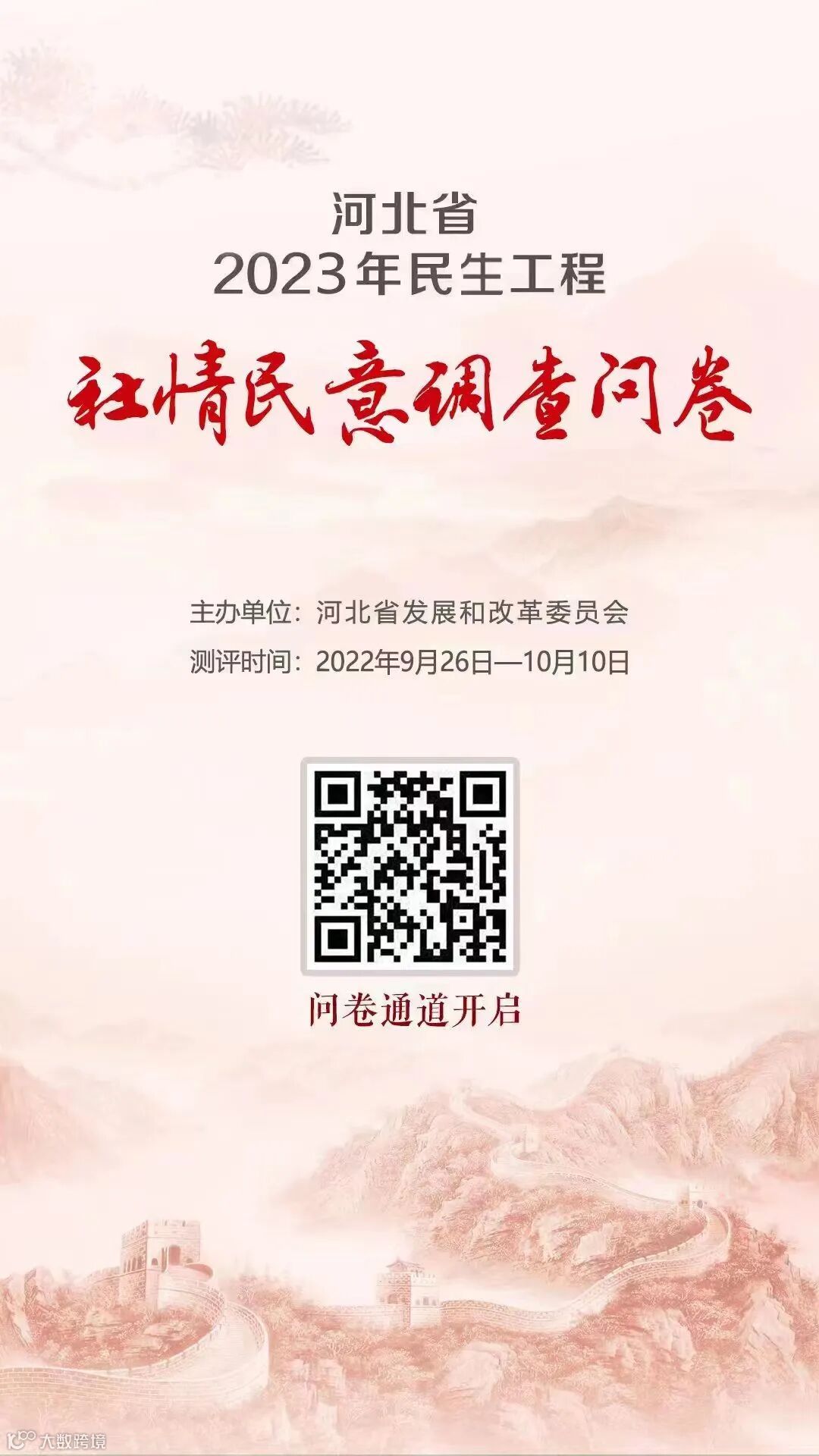导读:9月26日至10月10日,河北面向全省开展2023年民生工程社情民意问卷调查。此次问卷主要涉
