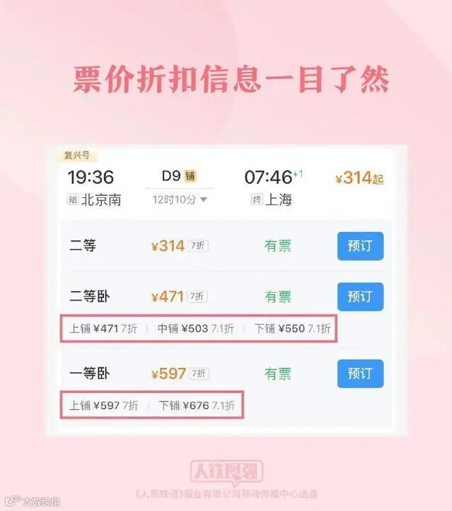 铁路12306App购票页面进行功能更新,新版购票页面可显示折扣信息,让旅客更加方便了解实时票价变化。