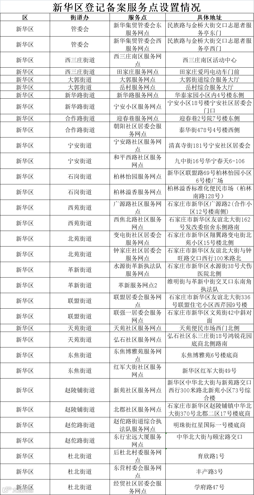 石家庄市电动自行车登记备案服务网点公示