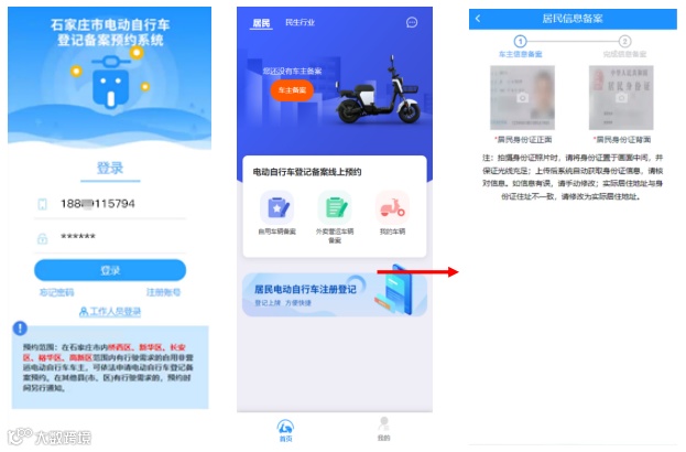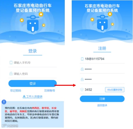 预约范围:在石家庄市内桥西区、新华区、长安区、裕华区、高新区范围内有行驶需求的自用非营运电动自行车车主,可依法申请电动自行车登记备案预约。在其他县(市、区)有行驶需求的,预约时间另行通知。操作流程如下:
