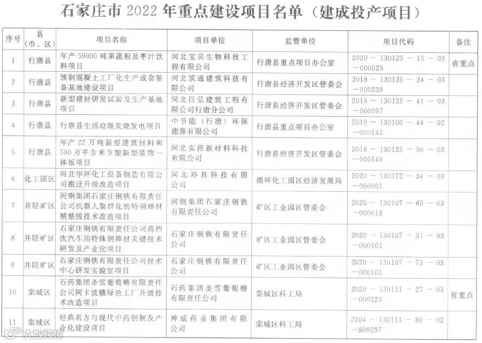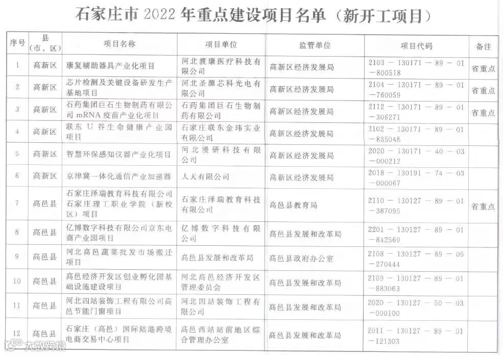 近日,石家庄市重点建设领导小组办公室印发通知,发布2022年重点建设项目名单,总投资3172.5亿元的462个项目入列,年度预计完成投资1100亿元以上。