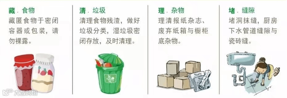 1.密封或堵住排水管道、通风口、窗户周围等进入房屋的缝隙。