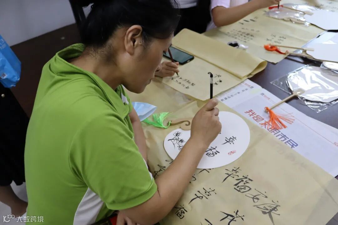 本次活动邀请专业指导老师采取“理论讲解+现场互动+实操演练”相结合的形式。活动开始,指导老师耐心地为学员们介绍了团扇的文化背景、由来和书写绘画技巧。学员们认真聆听,并在指导老师的带领下快速进入状态,纷纷拿起毛笔开始草拟自己喜欢的图案,指导老师一边指导学员练习笔法、调色等绘制技巧,一边提出修改建议,让学员们在轻松快乐的氛围中感受到了传统文化的魅力。